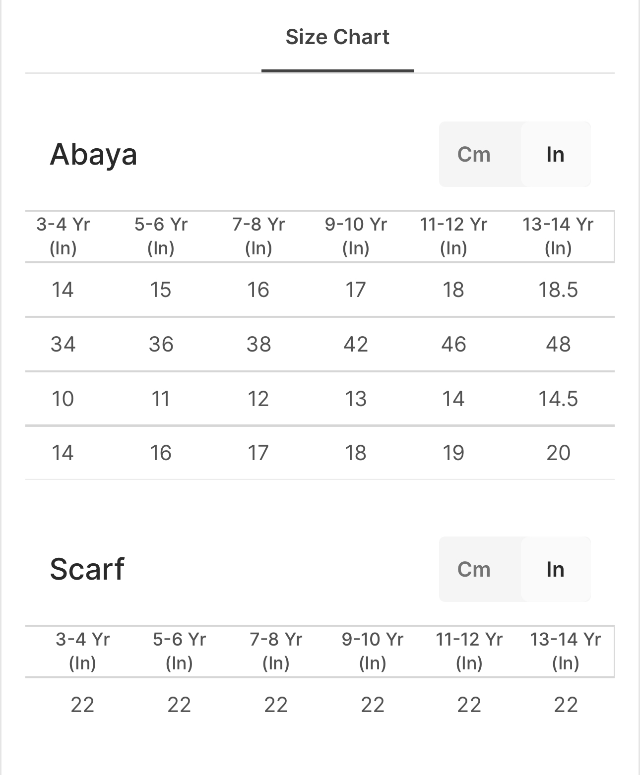 Size: 13-14 years